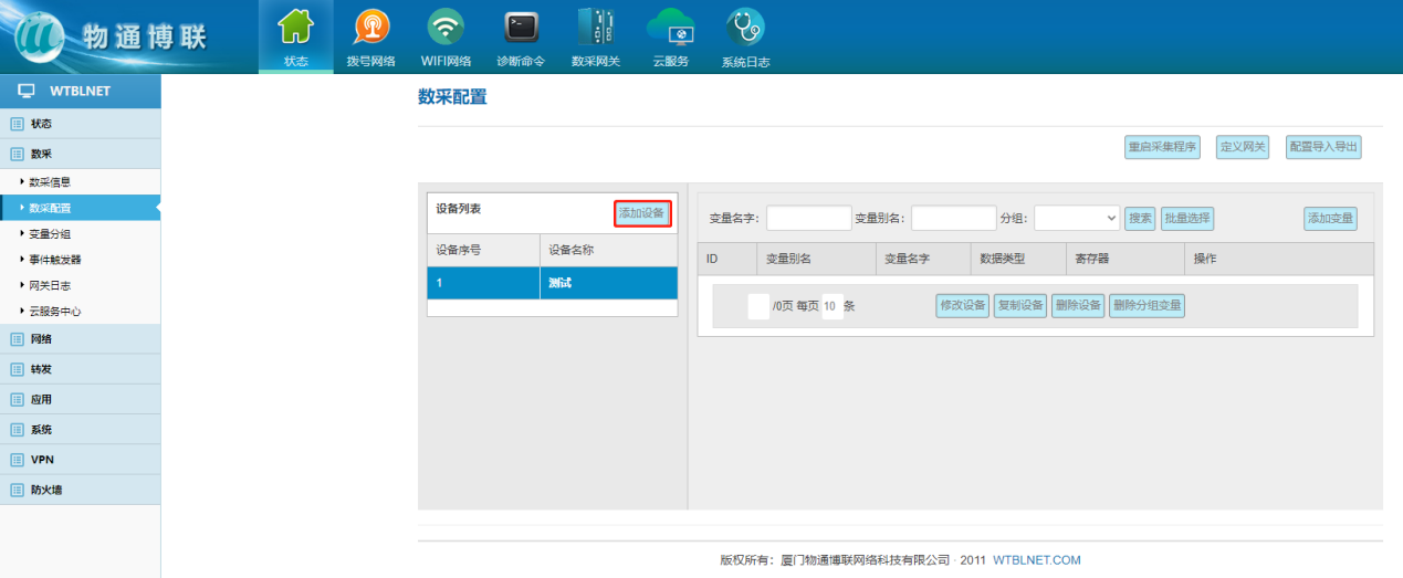 (3)網(wǎng)關配置數(shù)采模塊,將設備的數(shù)據(jù)信息采集