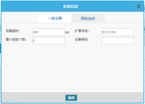 高級配置內的設備擴展字段默認為0,如需調節靜止時間(單位ms),輸入0;0;0;XXX