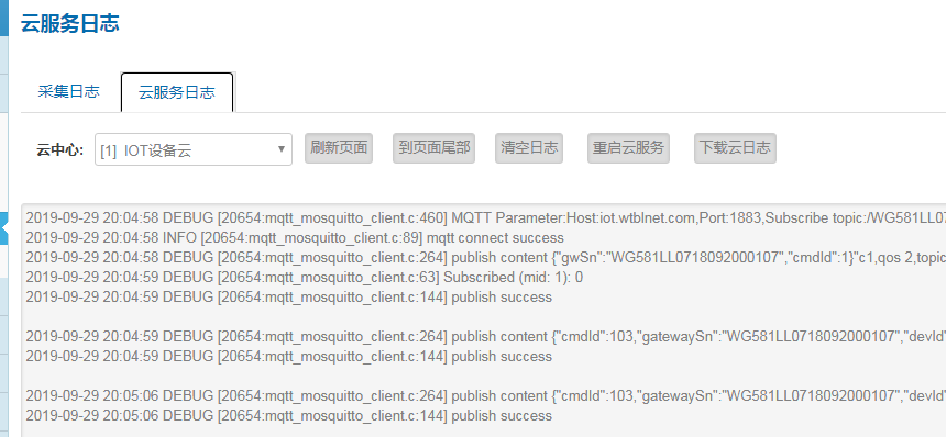 云接入日志用于診斷接入到云平臺的通信鏈路情況和數據報文情況。查閱路徑:網關---網關日志—云接入日志。