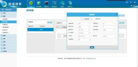 輸入設備名稱(任意),設備序號(任意,注意同一網關下的設備序號不能重復),從站地址(設備站號),通信協(xié)議(OPC UA),IP 地址(設備 IP 地址)以及端口號(設備端口號),采集周期根據(jù)自身需求設置,然后點擊保存。