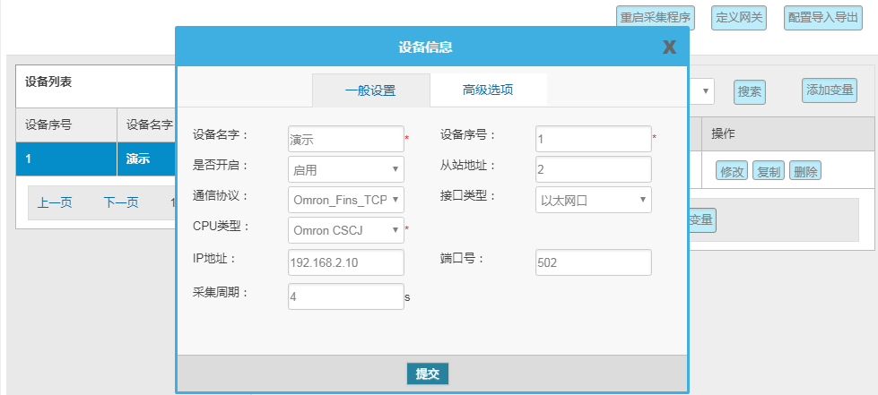 網關---數采配置---添加設備---添加變量---重啟采集程序并生效新的配置