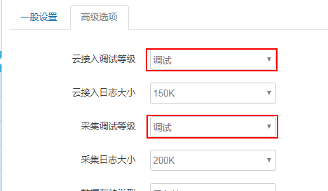 日志設置路徑:網關---云服務中心---云接入調試等級與采集調試等級.為了保證網關快速高效采集,調試完畢后請務必將網關采集日志和云接入日志等級調整為信息。