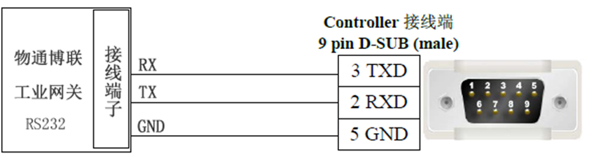 | 網關端子口接線 | 電源+ | 地線- | 5 GND | 3 TXD | 2 RXD |