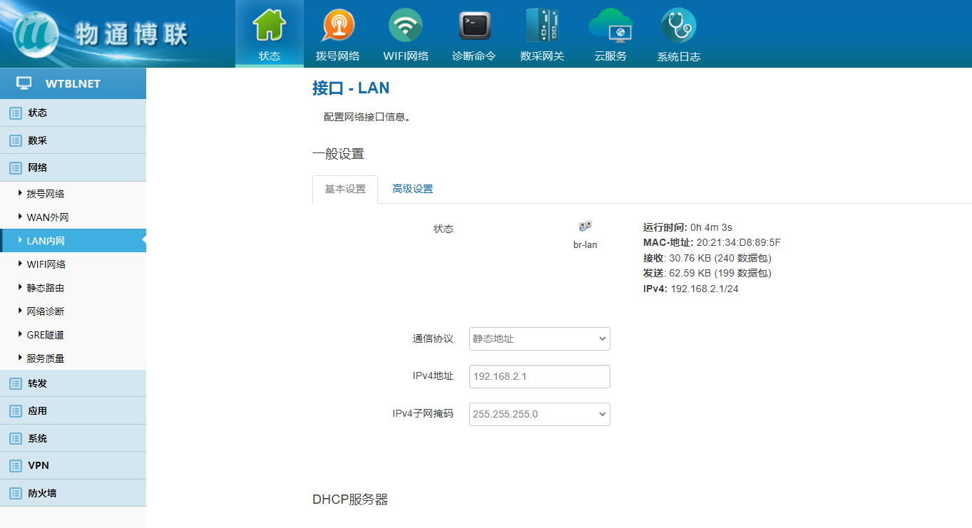 下載中心 視頻中心 常見問題 售后服務(wù) 工業(yè)網(wǎng)關(guān) 設(shè)備快線 數(shù)據(jù)云平臺 聯(lián)網(wǎng)設(shè)備 問答百科 如何修改工業(yè)智能網(wǎng)關(guān)的LAN口IP地址? 時間:2022-10-26 09:06:09 點擊:5945 關(guān)鍵詞:工業(yè)智能網(wǎng)關(guān),LAN口 問題:如何修改工業(yè)智能網(wǎng)關(guān)的LAN口IP地址? 回答: (1)電腦直連網(wǎng)關(guān),確保電腦與網(wǎng)關(guān)處于同網(wǎng)段或者自動獲取 瀏覽器里面輸入192.168.2.1 (2)登陸網(wǎng)關(guān)配置界面 默認(rèn)用戶名/密碼:admin/123456 (2)選擇網(wǎng)絡(luò)——Lan內(nèi)網(wǎng)——更改IPV4地址、子網(wǎng)掩碼,保存應(yīng)用 (3)注意電腦本機(jī)IP地址是否與更改地址處于同網(wǎng)段(自動獲取需重新拔 插網(wǎng)線) (4)瀏覽器輸入更改后的IP地址登陸到網(wǎng)關(guān)配置界面即修改成功 上一篇:工業(yè)智能網(wǎng)關(guān)和DTU有什么區(qū)別嗎? 下一篇: 工業(yè)智能網(wǎng)關(guān)需要另外配4G路由器嗎?